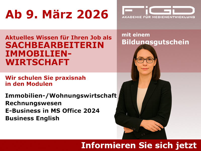 Die Immobilienwirtschaft boomt – und mit ihr der Bedarf an gut ausgebildeten Fachkräften. Wer sich für diesen vielseitigen Sektor interessiert, hat ab dem 31. März 2025 die Möglichkeit, sich mit einer praxisnahen Weiterbildung gezielt auf eine Tätigkeit als Sachbearbeiter/-in in der Immobilienwirtschaft vorzubereiten. Einen Überblick zu Trends und Chancen finden Sie auch in unseren Beiträgen zur Weiterbildung Immobilienwirtschaft sowie zur Sachbearbeitung Immobilienwirtschaft.